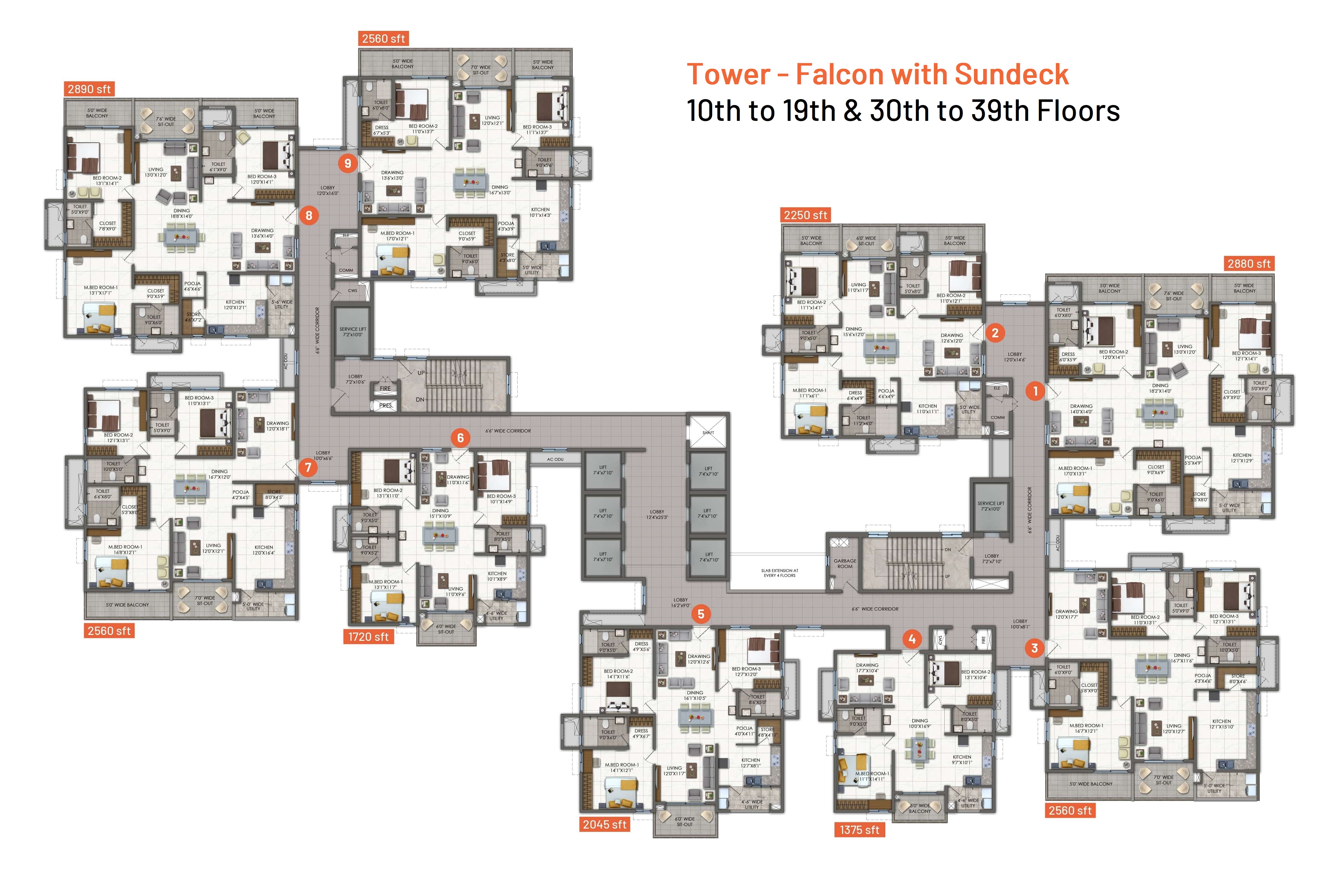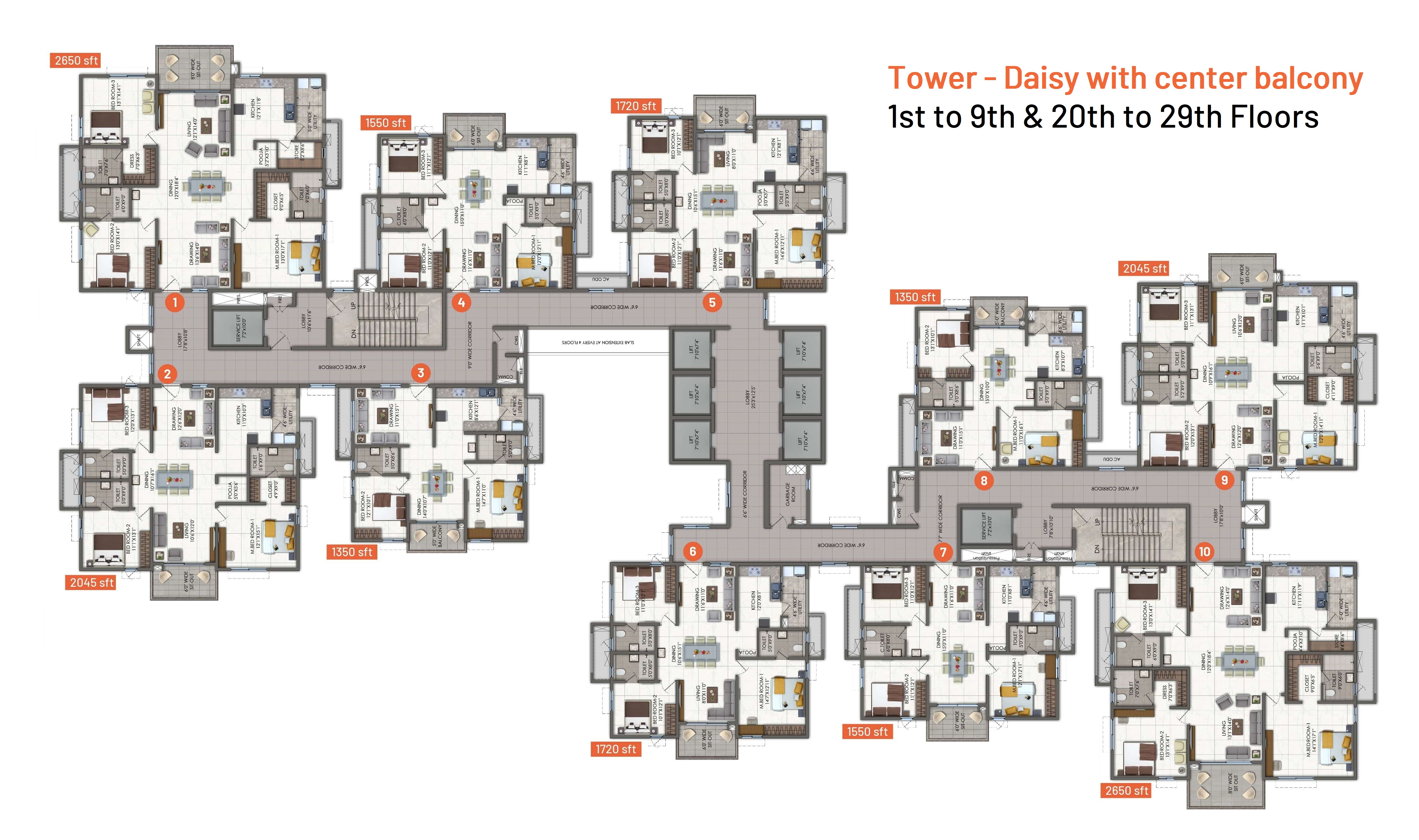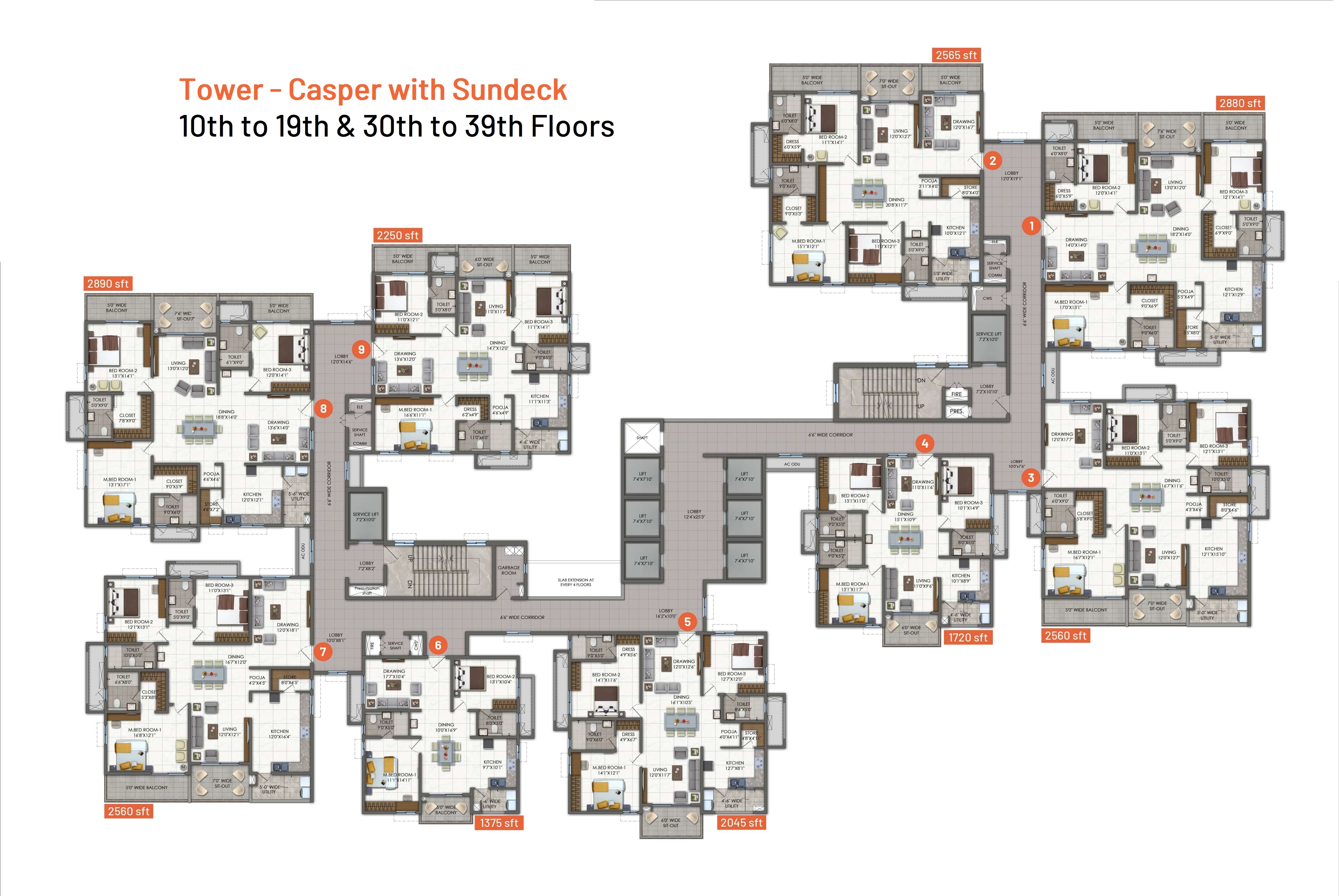 Rajapushpa Imperia offers a total of 3008 high rise apartments with 10 apartment units on each floor. These apartments are spacious and well-designed in 2 BHK & 3 BHK dimensions.