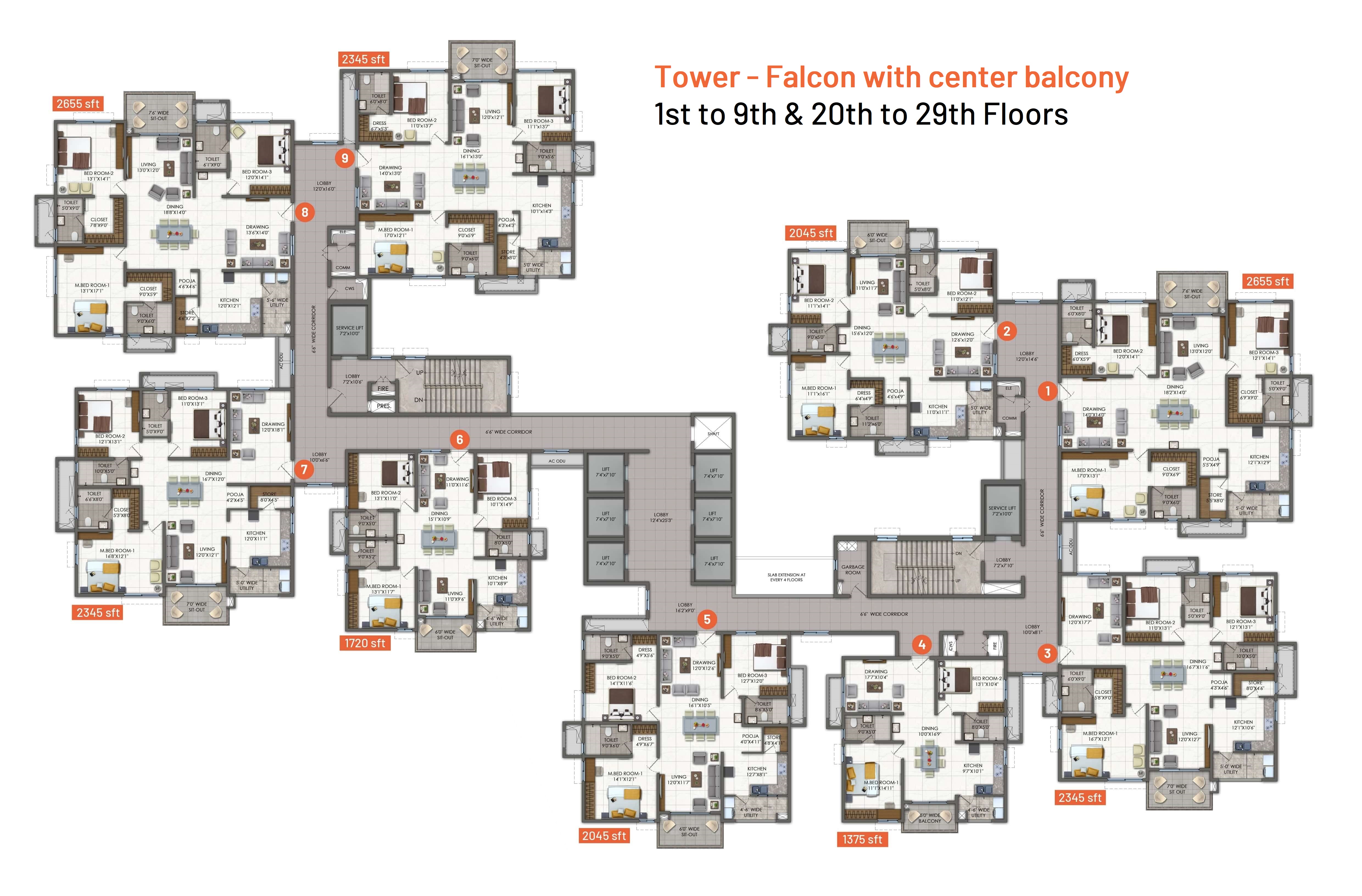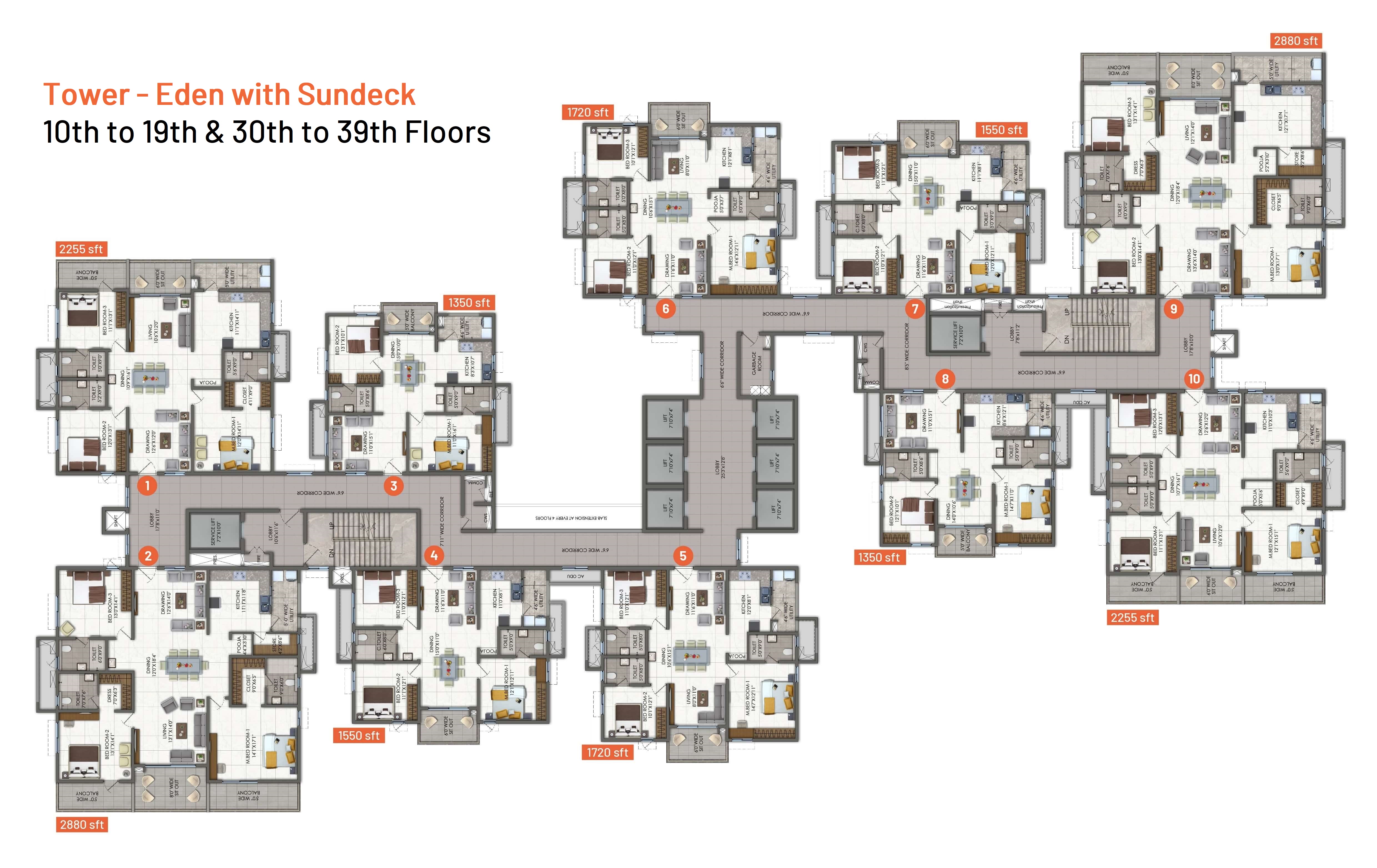Prepare to be overwhelmed with as many as 29 unique floor plans ... did we mention that we love to spoil you with choice? The 2 & 3 BHK apartments are meticulously planned with expansive spaces where nature teases you with bright morning rays and soothing breeze.